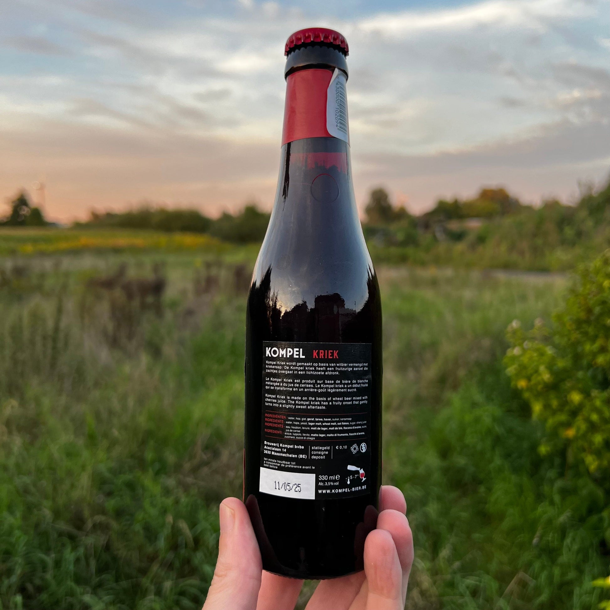 Kompel Kriek est fabriqué à base de bière inférieure mélangée à de la bière pure